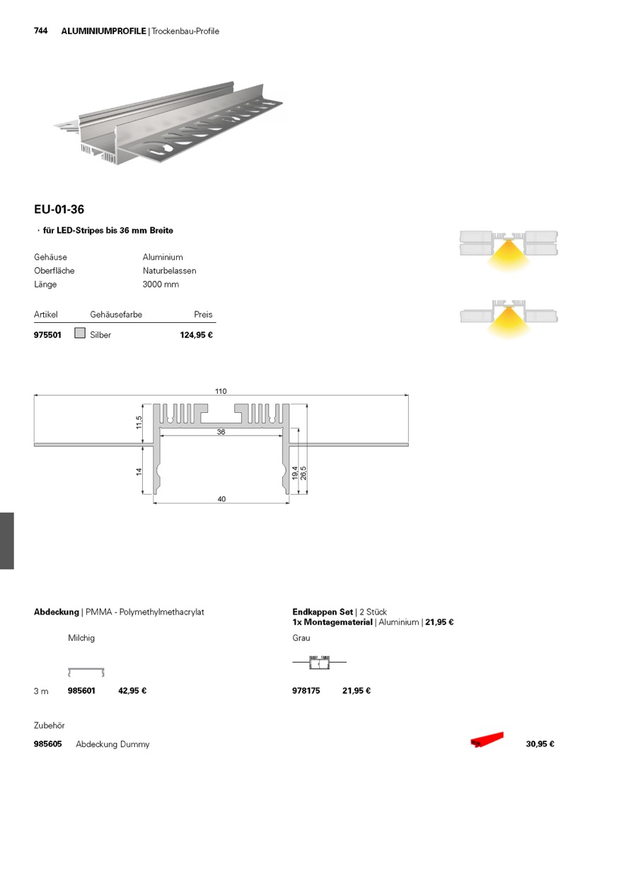 Weiterführende Links zu "Deko-Light Profil Endkappe, Endkappe P-EU-01-36 Set 2 Stk, Grau, Aluminium, Grau, 40x27mm"