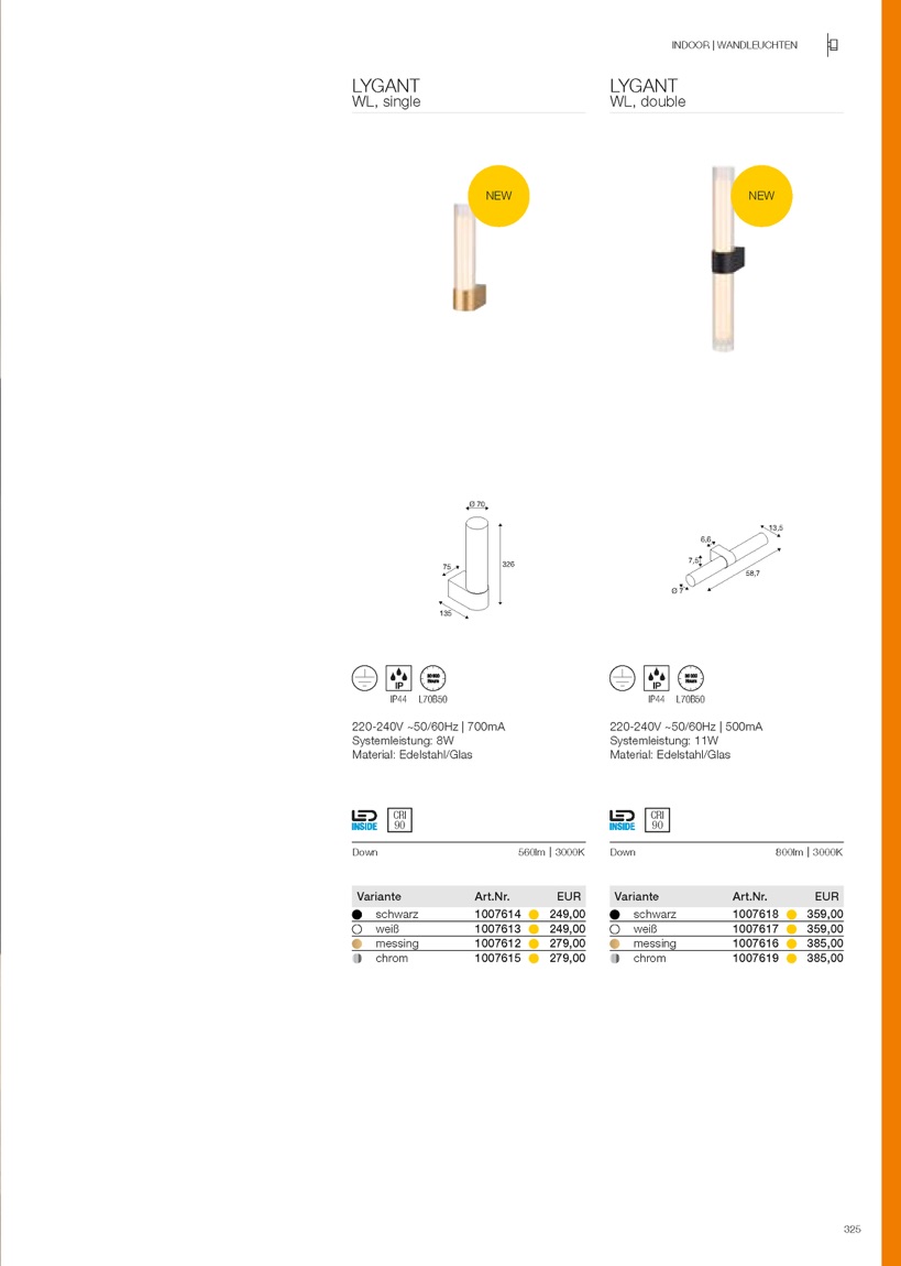 Kundenbewertungen für "LYGANT double, Wandaufbauleuchte, 3000K, 11W, messing"